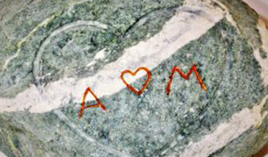 Hohe Tauern Geschenkstein „double heart“ persönliche Botschaft. Größe 13cm bis 15cm