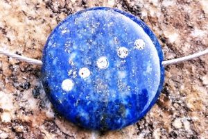 Lapislazuli mit 5 Zirkonia Kristallen | 3cm rund mit Edelstahlseilchen €55,00