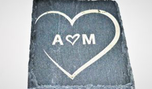 Ihre Botschaft double heart mit 2x Initialien in Naturstein Schieferplatte mit Laser Gravur gebrannt Größe 10cm x 10cm