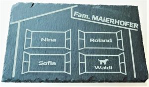 Ihr persönliches Türschild mit Laser Gravur auf Naturstein Schieferplatte Größe 26cm x 16cm